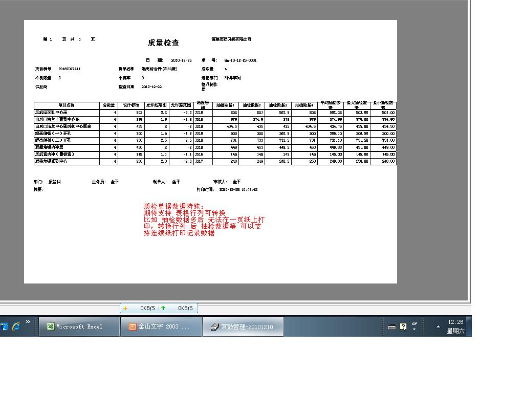 感谢金平 提出意见,质检单据的打印会在下次发布加以改进,敬请关注。