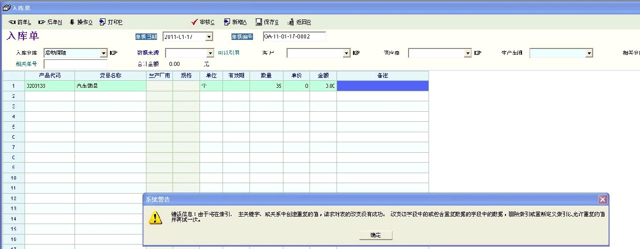 急!入库单审核时出现出错提示,什么解决?谢谢!