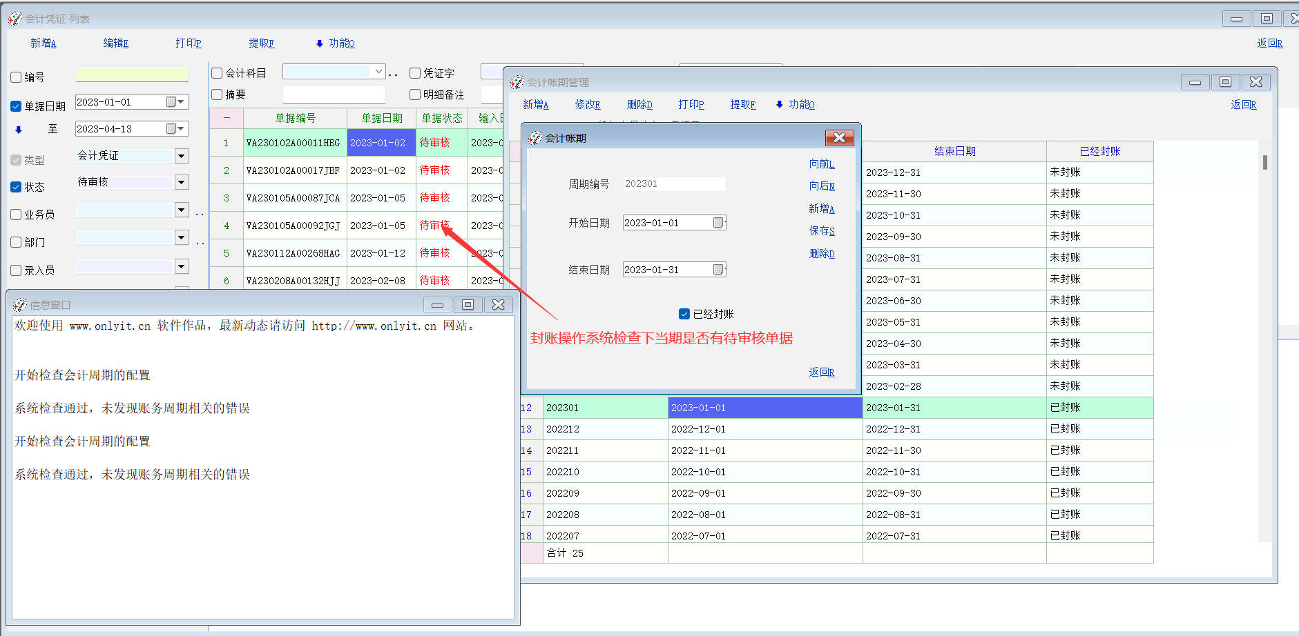 如题:可否增加会计周期封账操作时检查是否还有未审核单据的机制?