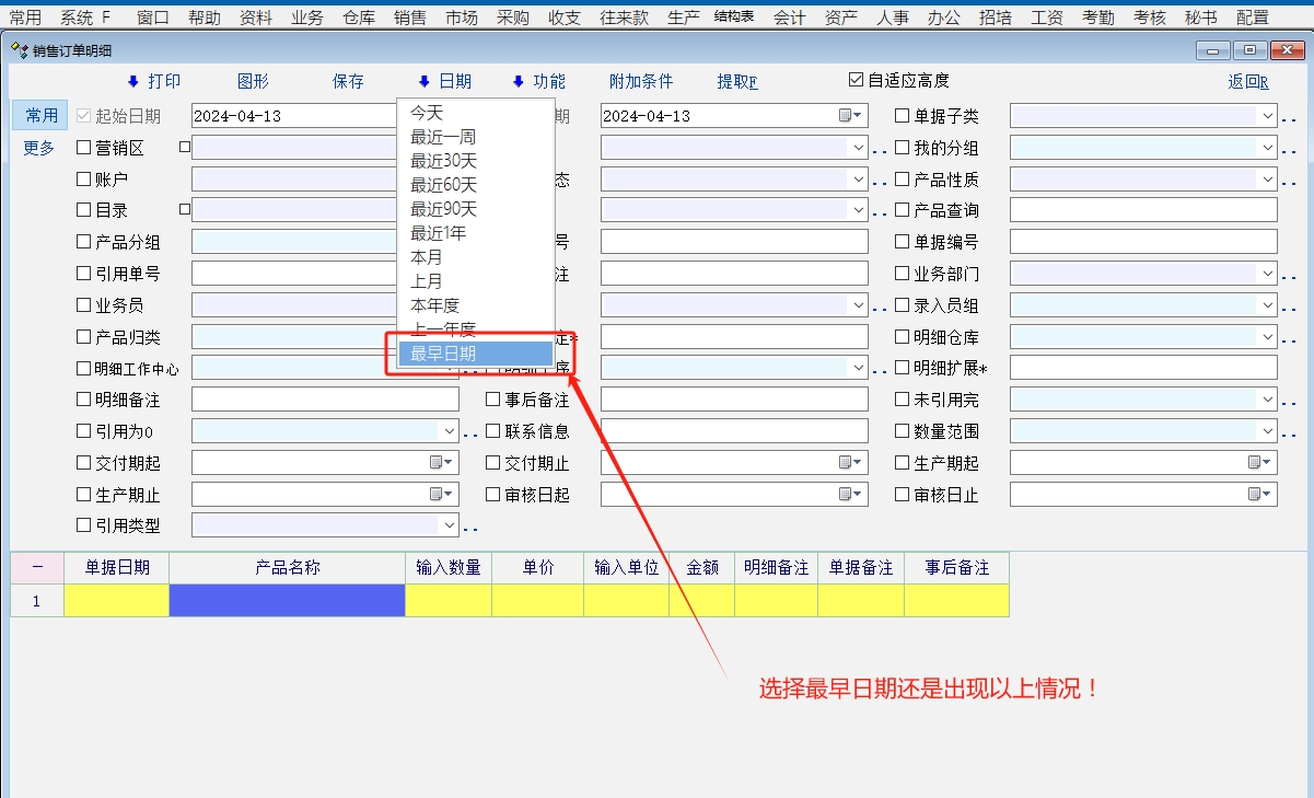 孟老师!系统升级到0412版,在选择“最早日期”时还是会出现以上情况!望改进!