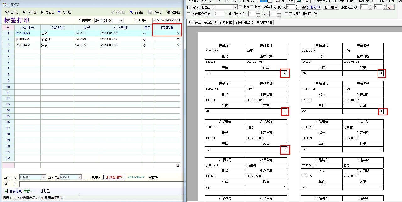 onlyit oit自身也带有标签打印功能,在商品基础资料的选项里面。但这个标签打印功能比较弱, 比如不能直观的加入和调用批号、生产日期等可变信息、不能记录哪些产品打印了多少张标签, 累计打印了多少张,于是有了自己弄一个标签打印的单据想法。 经过多次尝试和测试,有了下面这个打印脚本: ********************【update 1:8月28日终于实现不用拆分而直接一行打两张标签的方法了】***************** ********************【update 2:9月05日修复当总标签数量为奇数时最后一张不打印的问题。】*************** int main() { db_select_dbio("data");//根据名称选择数据内容 int rowcount,rowid,i,id,num,v_inp_num; string v_res_id,v_res_name,v_batch_no,v_produce_date,v_inp_unit_type_name,v_res_id_2; rowcount=db_row_count();//获得记录数 for(i=0;i<rowcount;i++) { v_res_id=db_res_ext('res_id');//获得指定列名的值 v_res_name=db_res_ext('res_name'); v_batch_no=db_res_ext('batch_no'); v_produce_date=db_res_ext('produce_date'); v_inp_unit_type_name=db_res_ext('inp_unit_type_name'); v_inp_num=db_res_ext('inp_num'); rowid=db_row_id(); id=1; while(id<v_inp_num) { db_insert_before(rowid);//在指定行前插入一记录 db_set_value_ext('res_id',v_res_id); db_set_value_ext('res_name',v_res_name); db_set_value_ext('batch_no',v_batch_no); db_set_value_ext('produce_date',v_produce_date); db_set_value_ext('inp_unit_type_name',v_inp_unit_type_name); db_set_value_ext('inp_num',v_inp_num - id); i++; id++; rowcount++; }; db_go_row(rowid+v_inp_num);//记录定位到下一产品 }; string v_res_id_3,v_res_name_3,v_batch_no_3,v_produce_date_3,v_inp_unit_type_name_3,v_inp_num_3,v_res_id_3,v_res_id_4; db_add_field('res_id_2'); db_add_field('res_name_2'); db_add_field('batch_no_2'); db_add_field('produce_date_2'); db_add_field('inp_unit_type_name_2'); db_add_field('inp_num_2'); mod_rowcount=rowcount/2+mod(rowcount,2); //9月5日修复标签的总数量奇偶数打印出错的情况 db_go_head(); for(i=0;i<rowcount;i++) { if(rowcount==mod_rowcount) //9月5日修复标签的总数量奇偶数打印出错的情况 { return 1; }; db_next(); v_res_id_3=db_res_ext('res_id');//获得指定列名的值 v_res_name_3=db_res_ext('res_name'); v_batch_no_3=db_res_ext('batch_no'); v_produce_date_3=db_res_ext('produce_date'); v_inp_unit_type_name_3=db_res_ext('inp_unit_type_name'); v_inp_num_3=db_res_ext('inp_num'); db_go_row(i); db_set_value_ext('res_id_2',v_res_id_3); db_set_value_ext('res_name_2',v_res_name_3); db_set_value_ext('batch_no_2',v_batch_no_3); db_set_value_ext('produce_date_2',v_produce_date_3); db_set_value_ext('inp_unit_type_name_2',v_inp_unit_type_name_3); db_set_value_ext('inp_num_2',v_inp_num_3); db_next(); db_del_row(); rowcount--; }; return 1; }; 操作步骤: 1、业务环境里面启用一张仓库类自定义单据 2、在单据的显示定制里面去掉不需要的列,只保留产品编号、名称、批号、生产日期、单位、数量这几列 3、将以上脚本写入到打印模板里的脚本编写框内保存 4、定制打印格式如附图【update 1:设定用于承载第二列标签的模板如图】 这个脚本还有改善的空间,还望高手门指点! |