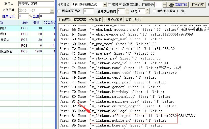 但是在加工单里的打印快递单的联系方式缺变成了v_linkman.mobile_no,v_linkman.office_no