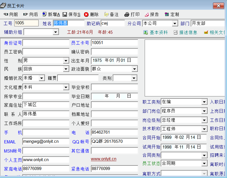 员工卡片