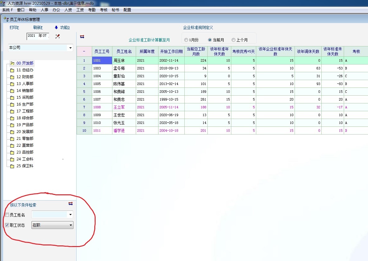 2,年休标准-按以下条件检索能不能加几个条件选项?