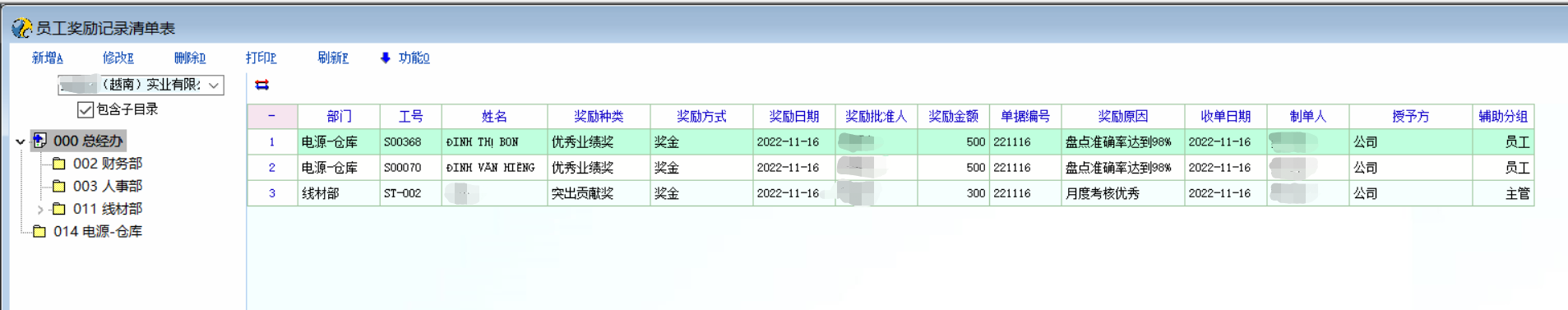 员工奖励记录列表明细中没有辅助分组和备注信息,不利于对员工细化管理,建议增加,通过显示定制进行管理!谢谢!