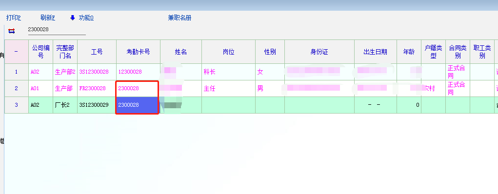 你说的这个系统防呆提醒在修改完员工卡号的时候点保存是不会提示的,只能在下一次打开员工资料界面的时候才能提醒,这个还是有弊端的,最好是在点击保存的时候系统可以检索一下数据库中是否有重复的员工卡号,如果有重复的程序直接返回不进行插入的数据库的动作!!!这样才能完全避免重复的发生