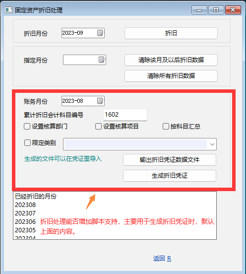 固定资产折旧模块能否增加脚本支持,主要用于在计提折旧时设置一些默认的选项。