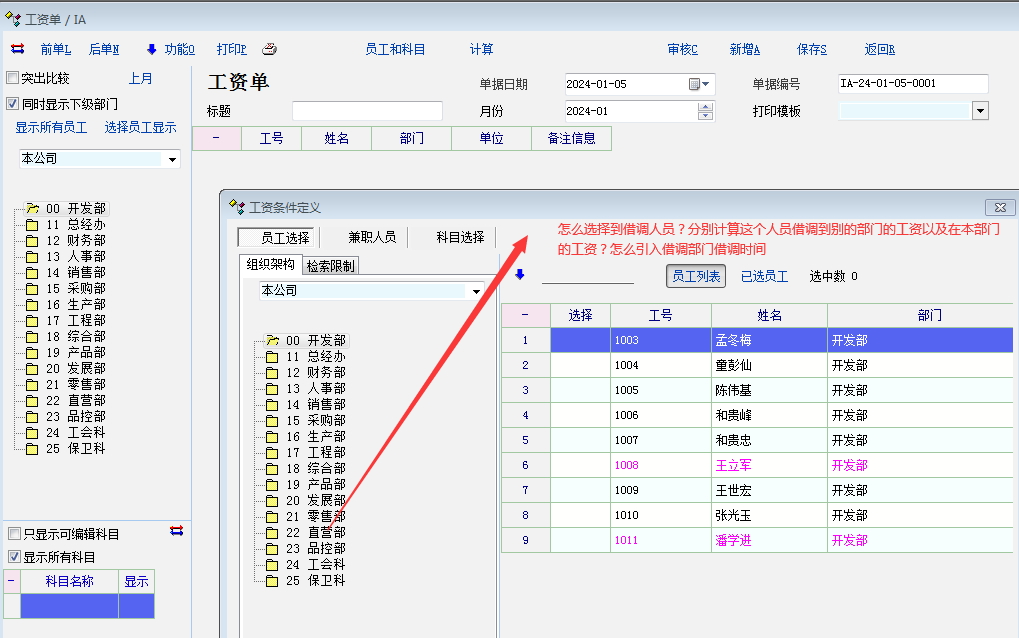借调记录内时间怎么引入工资单里面计算?