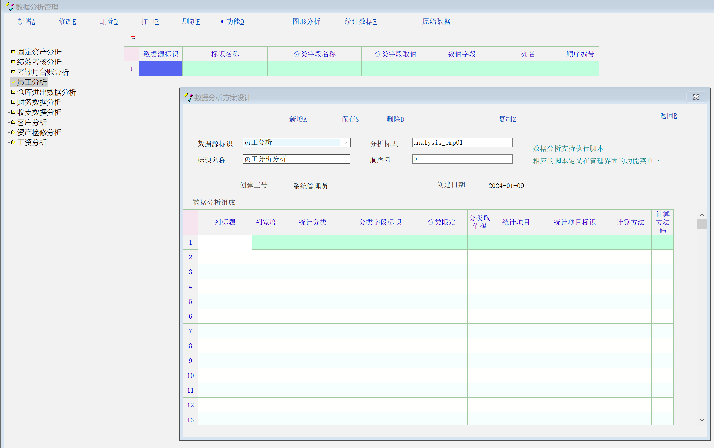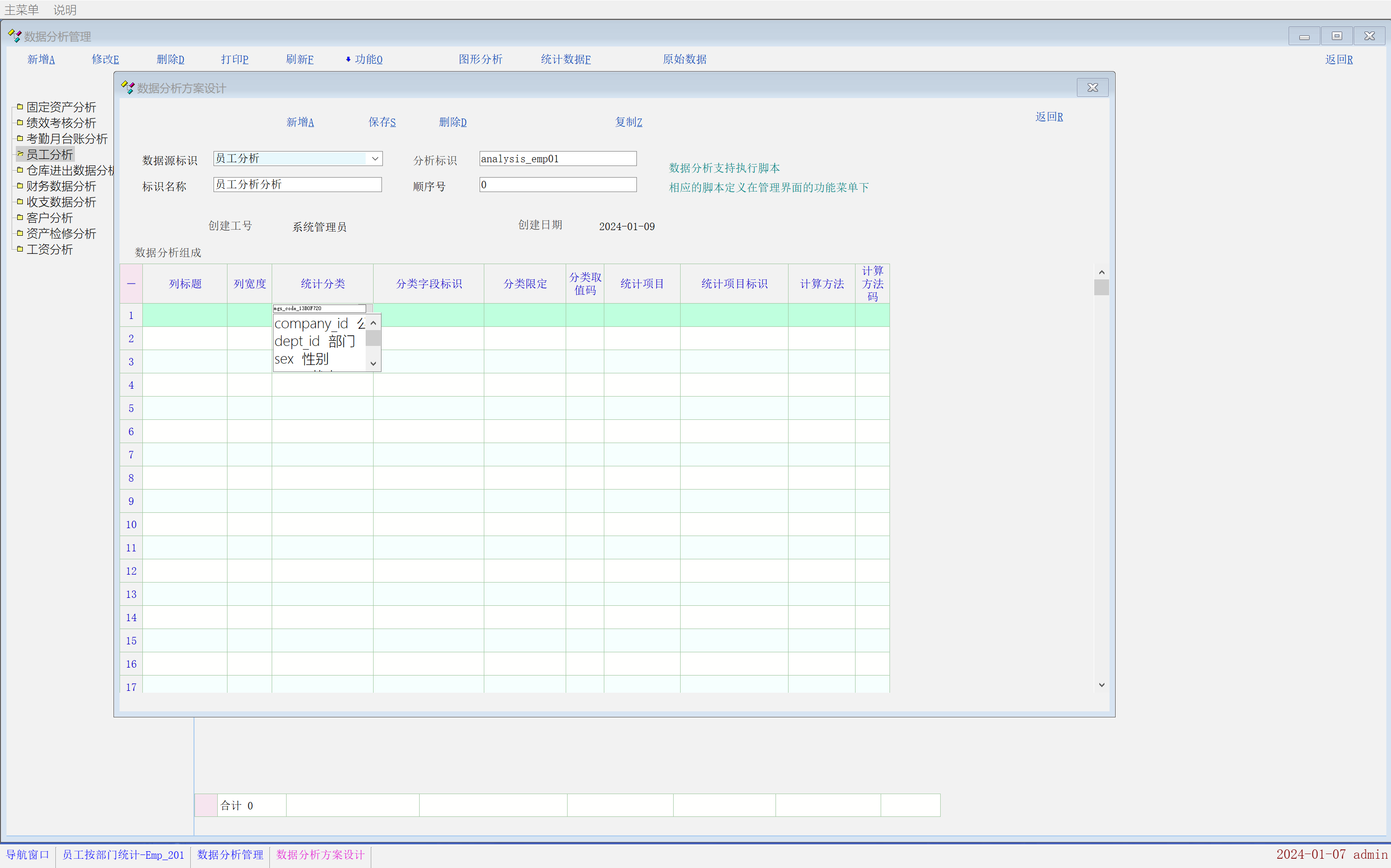 建议 员工数据分析中的 统计分类 字段  能够支持 扩展属性 和附加属性   目前仅支持部分员工资料中的字段 可统计分析的项目有限!无法满足精细分析的需要