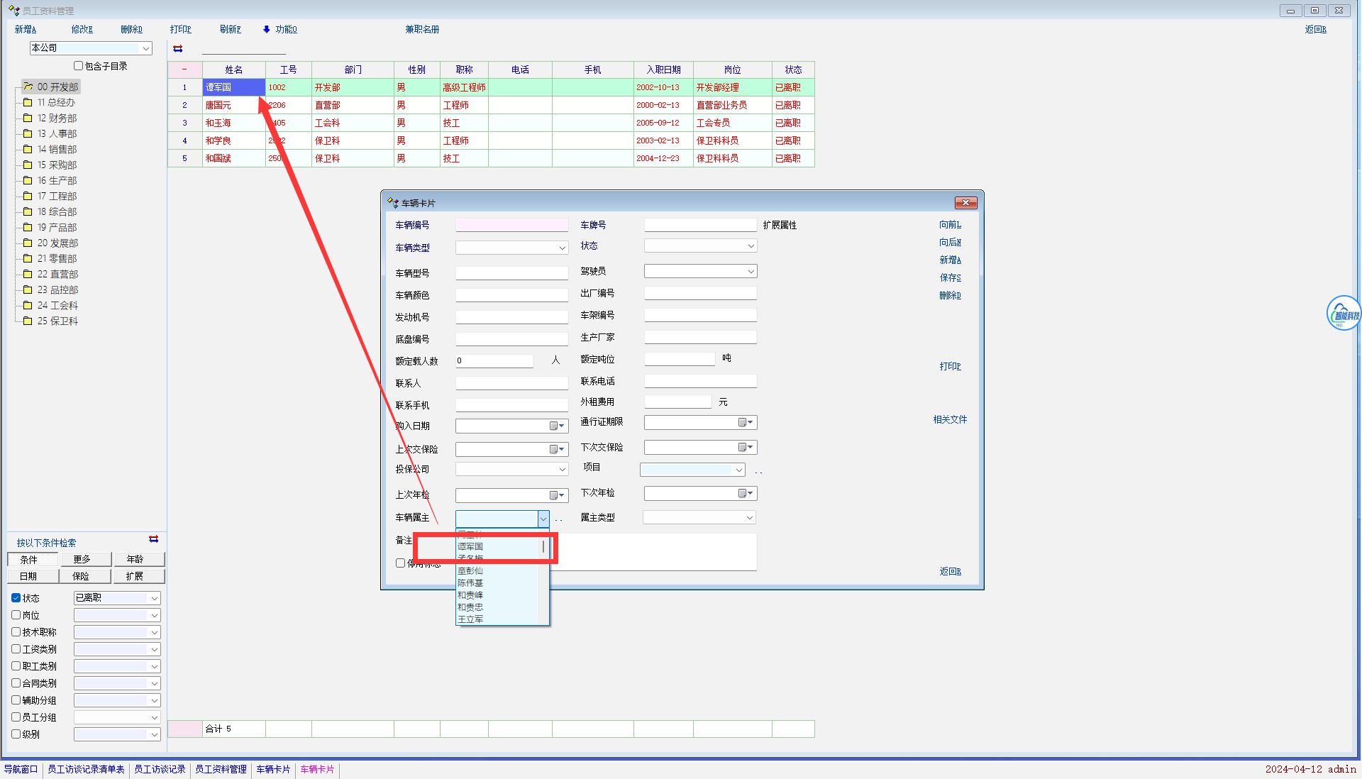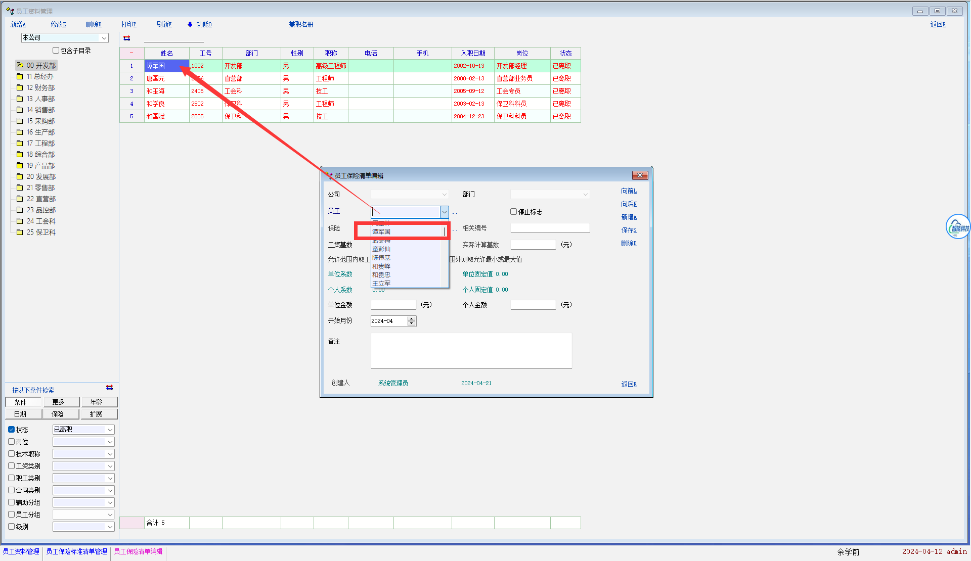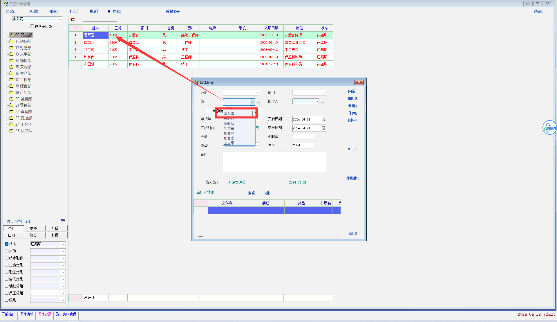 在员工离职后新建某些记录时员工选项出现已离职员工,正常来说,已离职员工不该出现在离职后新建记录的员工选项中的,