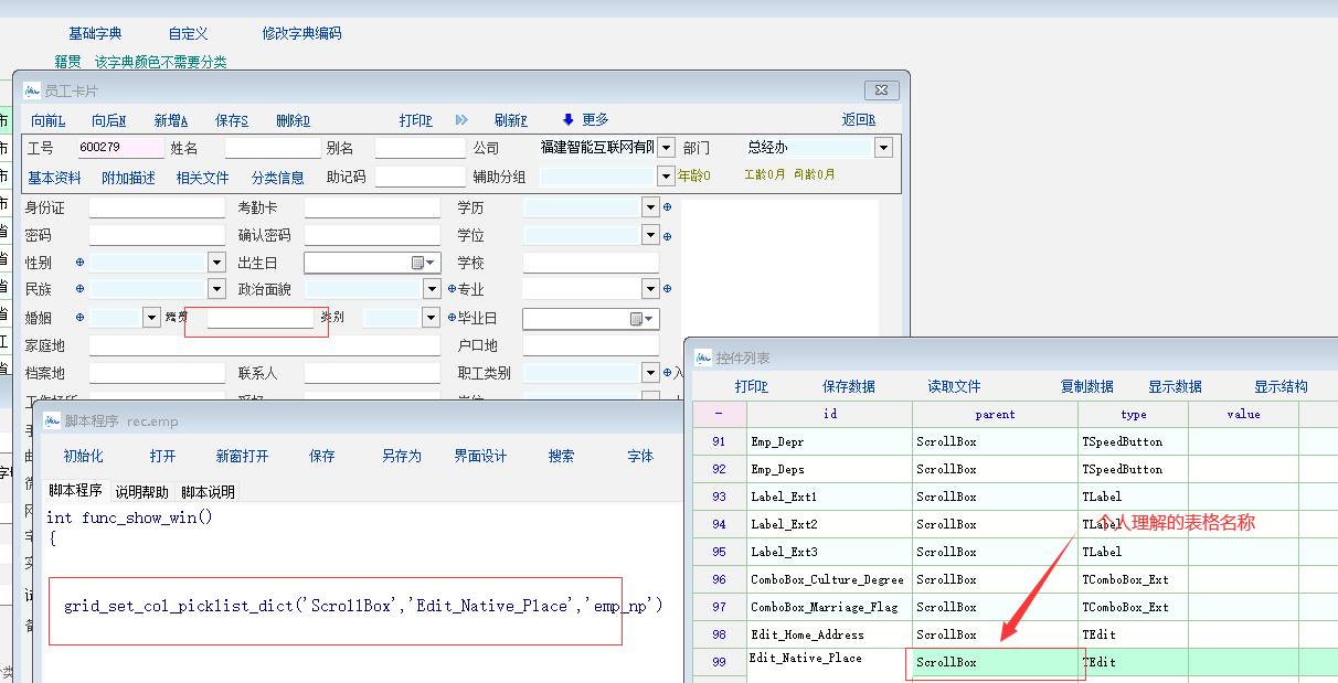 如下列脚本将员工卡片籍贯字段改为下拉框没有成功