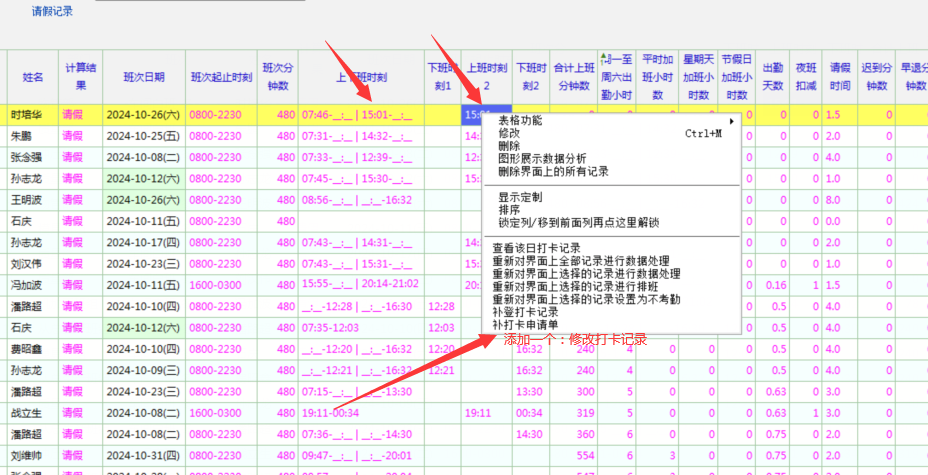 原创_考勤日帐里面添加修改考勤打卡数据快捷方式_人力资产