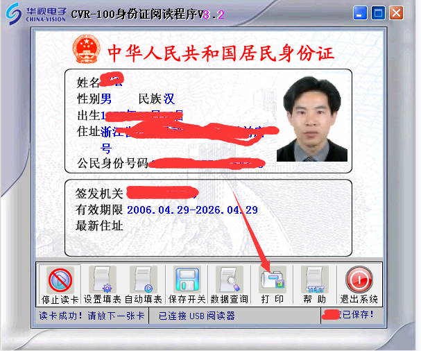 如果系统里面------直接再读取身份证--------这里有直接保存文档与打印功能(第三张图片),会减少很大的工作量