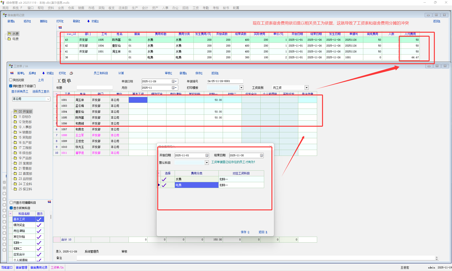 宿舍费用目前是没有关联到工资单里面,确实希望系统支持关联!