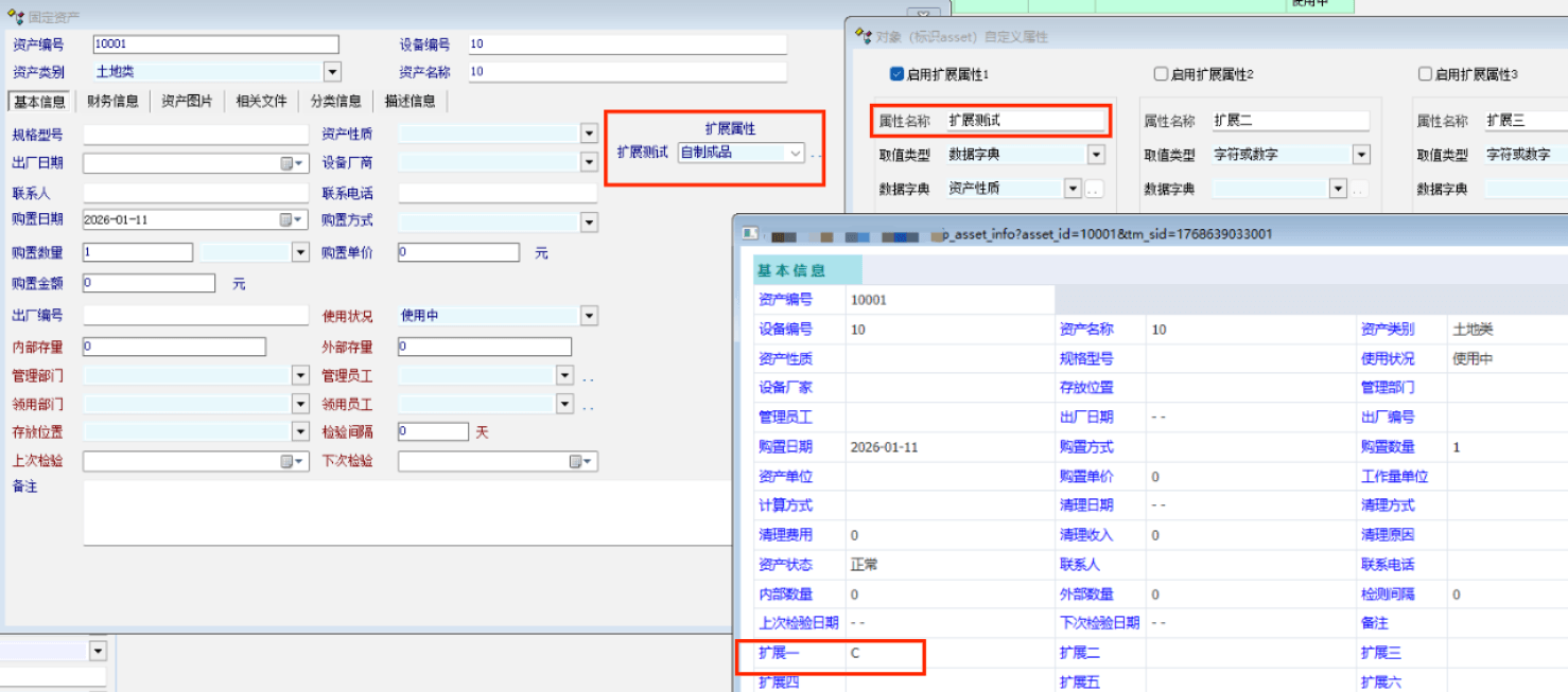 资产扩展的属性名称未同步到资产报告,                                       资产报告依旧显示扩展一扩展二