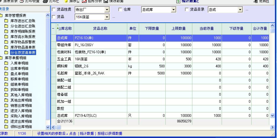 ①建议每种“报表”都增加物资数量的合计项,对总成产品和选择的零组件是很有必要的。