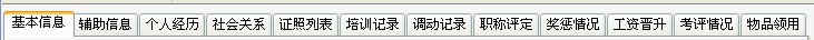 7、“员工资料管理”上建议集成度高些,在员工资料管理上员工方方面面的情况就能一目了然,如在员工资料管理上除有员工基本信息外,还知道该员工拥有什么证件、领了什么物品、内部调动情况、奖惩情况、职称评定情况、培训情况、社会关系、工资变化情况等等,同时所有内容都有支持模块,其支持模块对所有员工有分析报告统计,如物品领用模块就能查出所有员工的领用情况的分析统计,证件管理模块能看出所有员工拥有的证件情况,如拥有驾驶证的员工有几人、什么时候领取的等。当然这两者是关联的,能自动更新以保持统一。员工资料管理建议设置如下:(描述二)