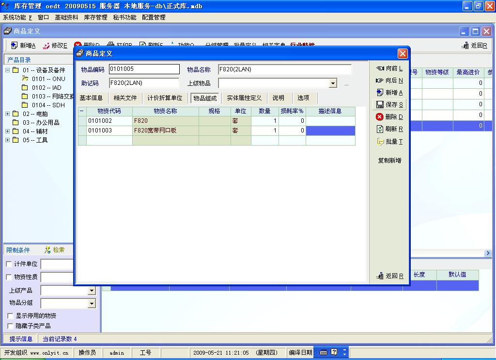 物品组成已经定义了,在组装单的物资名称下拉列表中没有可选物品,点击右侧手型图标进入“选择BOM物资”窗口有此物品,但选择以后不在组装单的物资名称选择框中显示。