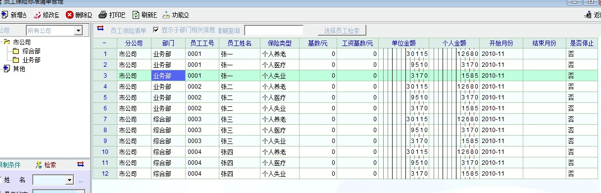 第一:保险标准中员工保险标准需要一个人一个人的设置,不能批量设置。人数较多时候很麻烦。