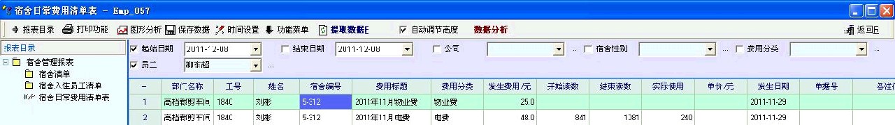 各部门宿舍费用汇总要和工资单中的宿舍费用科目汇总核对要一致,现在要分部门汇总宿舍费用不方便,能否宿舍费用清单检索条件中增加部门、父部门、员工集合这几项?