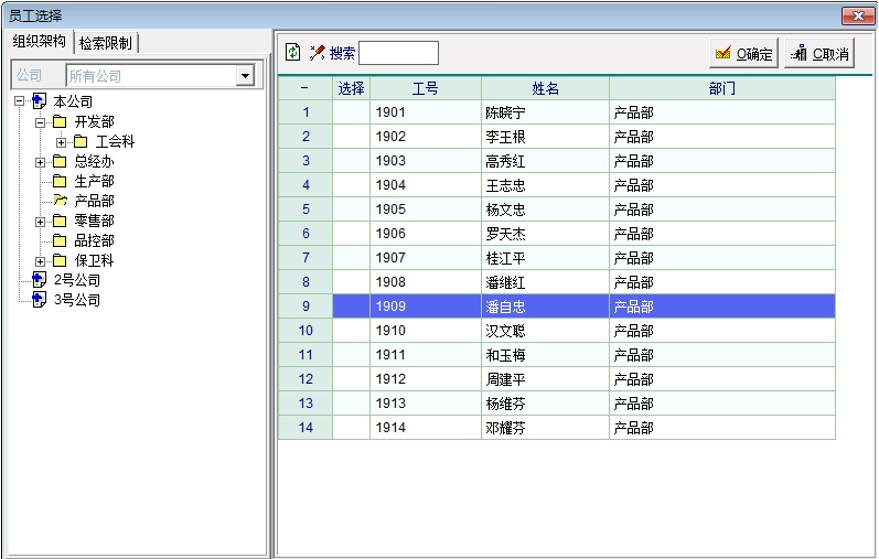 如题,如果有重名的,选择“员工”时,弹出菜单只有“工号”和“姓名”区分,不方便判断,希望增加“部门”显示,方便定位选择员工。