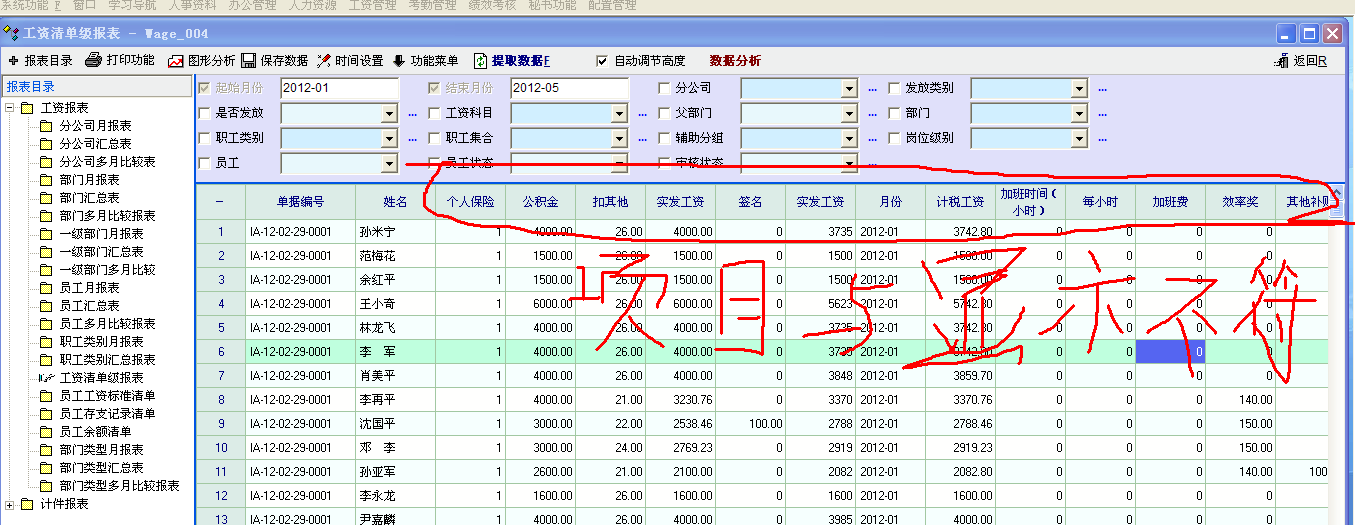 在人力资源软件中,我发现了工资清单级报表显示目录的错误。