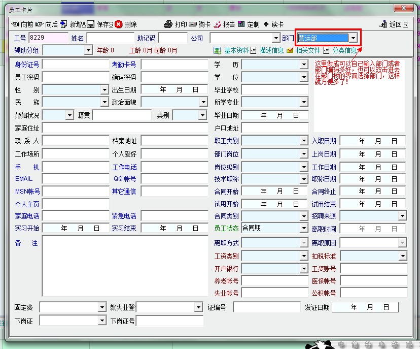 原创_【意见】员工卡片页面部门这里能自己输入比较方便!_人力资产