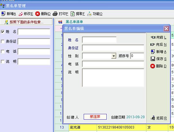 可以啊,不过没什么用吧。在人员资料func_f9_call 函数里加脚本,按F9就转过黑名单,不过我试了二者没什么关联。黑名单里添了的记录,新增人员资料照样可以添加。