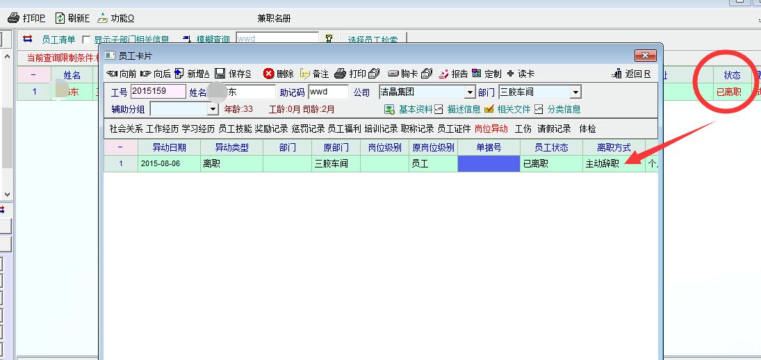 我也有这个问题,暂时只能查看员工异动记录或看员工报告