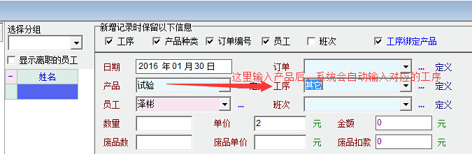 在计件工资功能中,当工序绑定产品时,输入产品后,系统会自动输入绑定工序。而在计件工资单中,工序绑定产品时,输入产品各类后系统却不会自动输入绑定的工序,需要手动输入或选择相应的工序,建议完善这个功能:当计件工资单中工序绑定产品时,输入产品后系统能自动输入绑定的工序!否则,这个“工序绑定产品”的功能也就没有什么作用了。