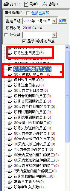 老师,一个公司有些人过阳历有些人过农历,但软件中的生日提醒虽然阳历和农历和显示,但对于一个人来说一年会显示两次,存在重复的可能,如果一个企业员工上千人,就不好记住 了,所以我建议在员工资料里增加一个字段:生日类别,去选择阳历和农历,然后依据这个在提醒生日里分别显示,这样一个人一年就会显示一次,不需要人工去判断,我觉得这种方法是可行的,望采纳,谢谢!