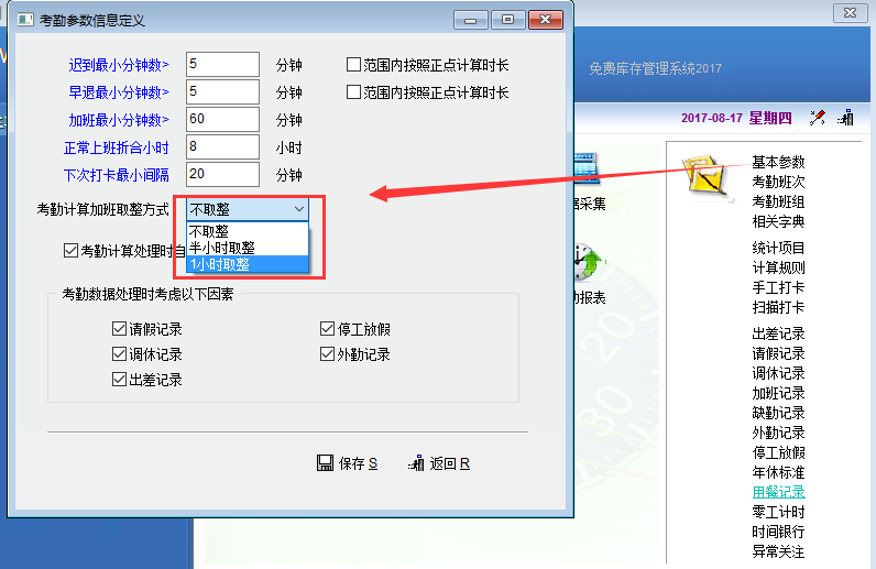 考勤日账的合计时间可否显示整点,如打卡时间07:45--12:00 13:26--17.50 合计是8.19小时,但我想让他只显示8小时,,合计上班数,也是一样如果正常打卡时间内。就显示480分钟,这样的如何设置,能具体说下步骤吗? 以上谢谢 |