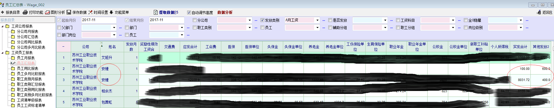 在几个月的使用中,发现在单月有多次工资发放的情况下,"员工月报表"及"员工汇总表"统计时会出现 同一个员工单月多行的情况,多次研究发现 原因: 当员工转移部门的情况下,报表在即使未选择部门显示的情况下,也会根据建立工资单时员工的部门为查询关键词。即 假设员工X 11月15日从A部门转移至B部门,则11月15日前后的工资单会汇总成二行显示-- 月份 员工 部门 工资 2017.11 X A 1000 2017.11 X B 2000 以此类推,可能现有报表在员工 公司、部门、岗位、职务、状态等发生变化的情况下,也会出现同一员工单月多行的情况。 建议: 因"员工月报表"及"员工汇总表"更多的用于对员工多月/整年的工资统计,财务也需要对单月员工数、单月员工工资总额做计税基数做统计及员工工资花名册存档等操作,现有的报表会对相关工作造成混乱,建议-- 1.报表中 现有的“员工月报表”和“员工汇总表”修改成 只以员工工号为关键字做查询,以保证更加普遍意义的员工统计功用; 2.为保证其他 确有将公司、部门、岗位、状态、员工 做多关键字查询的需要,也可 保留现有 “员工月报表”和“员工汇总表”的查询,改名为 “员工精细月报表”和“员工精细汇总表”。让两种类型的报表共存以保证所有人的需求; 3.当然,最好的是可以让 用户灵活的选用不同的字段做关键字查询…… 以上,烦请管理员大大考虑,谢谢~ |