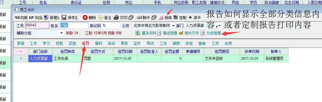 1.老板要求把员工的所有信息资料都呈现出来,当点击报告按键后,只显示基本信息和部分的分类信息内容