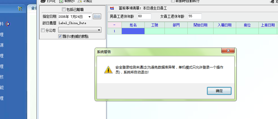 今天突然在使用考勤月报表,并导入一些数据过后,就提示安全登录未通过,然后软件就自动退出去了,怎么回事情呀,急求急求~!!
