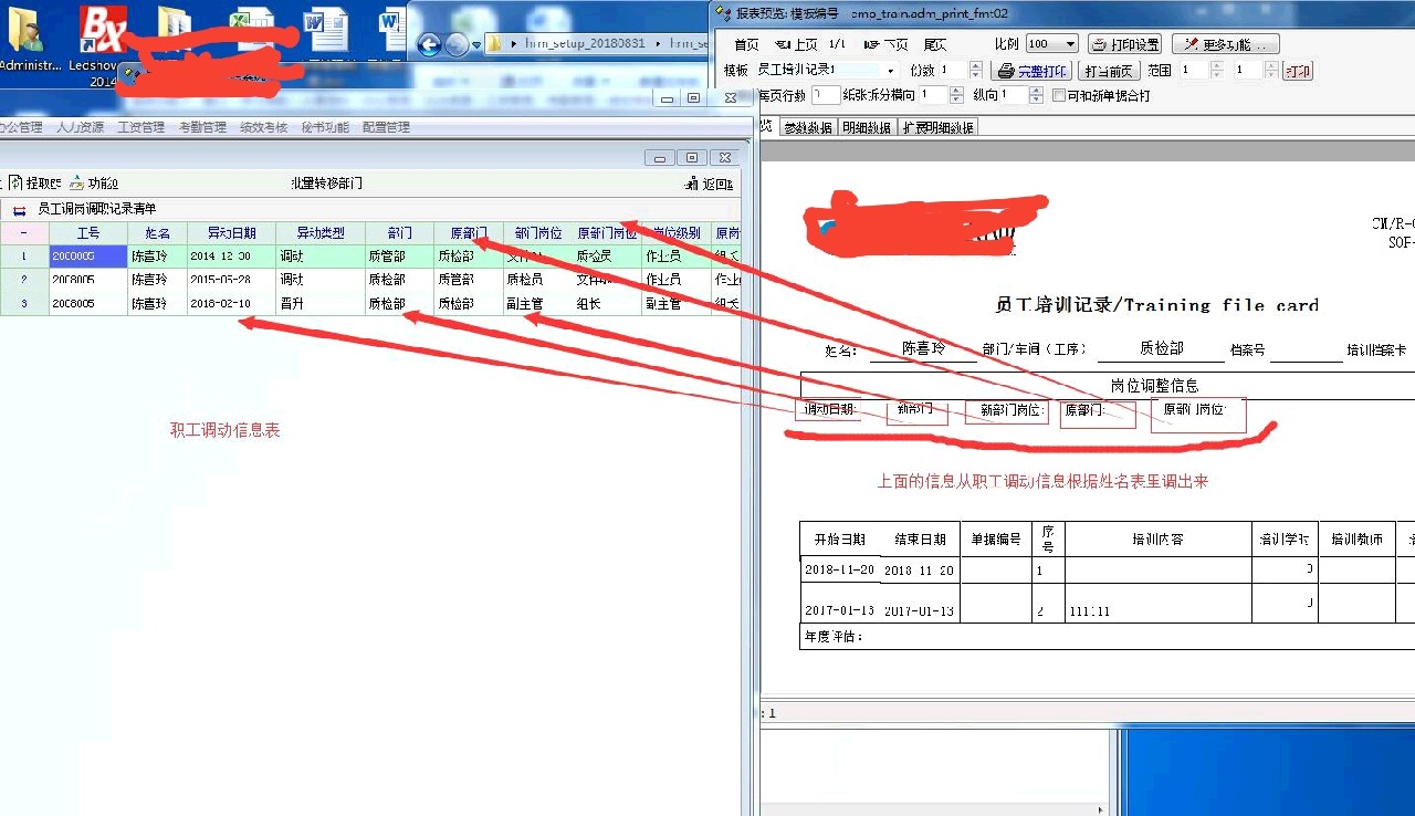 求助_打印个人培训记录表时,怎么样才能把个人的岗位调动信息也打印出来。_人力资产