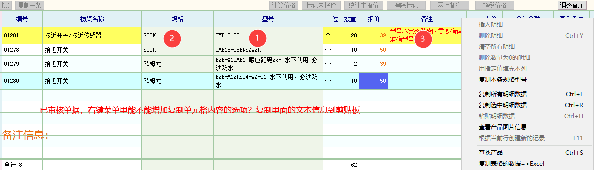 有时候软件内部也不是所以的内容都能直接复制粘贴的,比如说库存报表里查询的库存信息,如果不正确,需要做一个盘点单,这时你是没办法直接复制库存报表里的明细信息粘贴到盘点单的,如果能单独复制单元格内容到剪贴板就方便多了,直接复制商品名或型号什么的,直接粘贴到盘点单就能快速录入这个商品信息,我觉得实际使用起来还是很方便的。