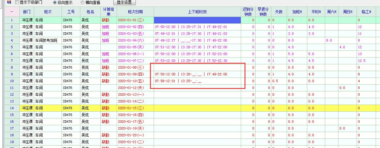 建议在日考勤报表中能加入批次补卡功能,比如这里他选择他这能根据排班规则自动补上他空白没打卡的,就不用一条一条记录的输入了,这样很费时间……