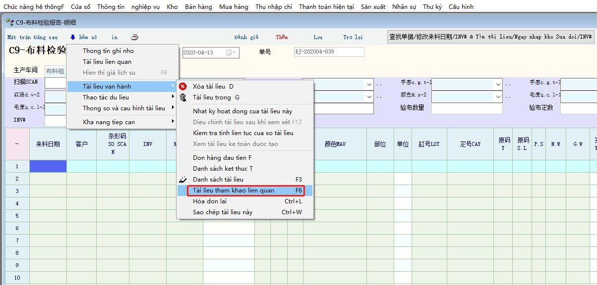 各个单据的:''引用相关单据菜单''在首次打开的时候可以调用对应的越南文,但是点击前单之后再操作就变成''引用相关单据'',无法调用对应的越南文