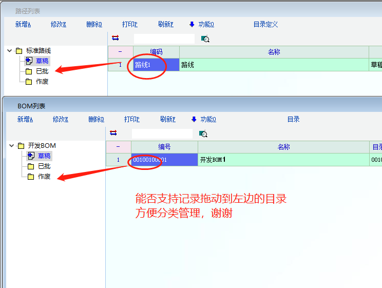 推荐_能否支持记录拖动到左边的目录 方便分类管理,谢谢_产供销