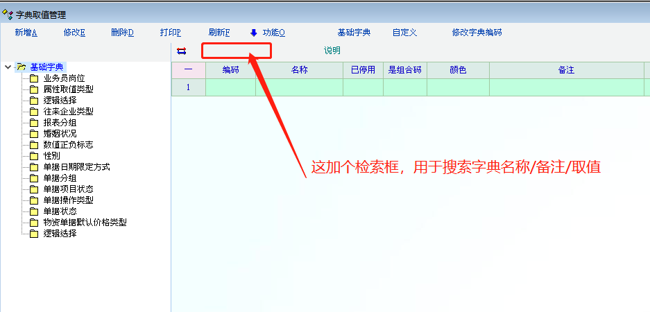 找字典名称在左边目录树右键菜单查找,找字典取值编码在右边列表右键菜单查找