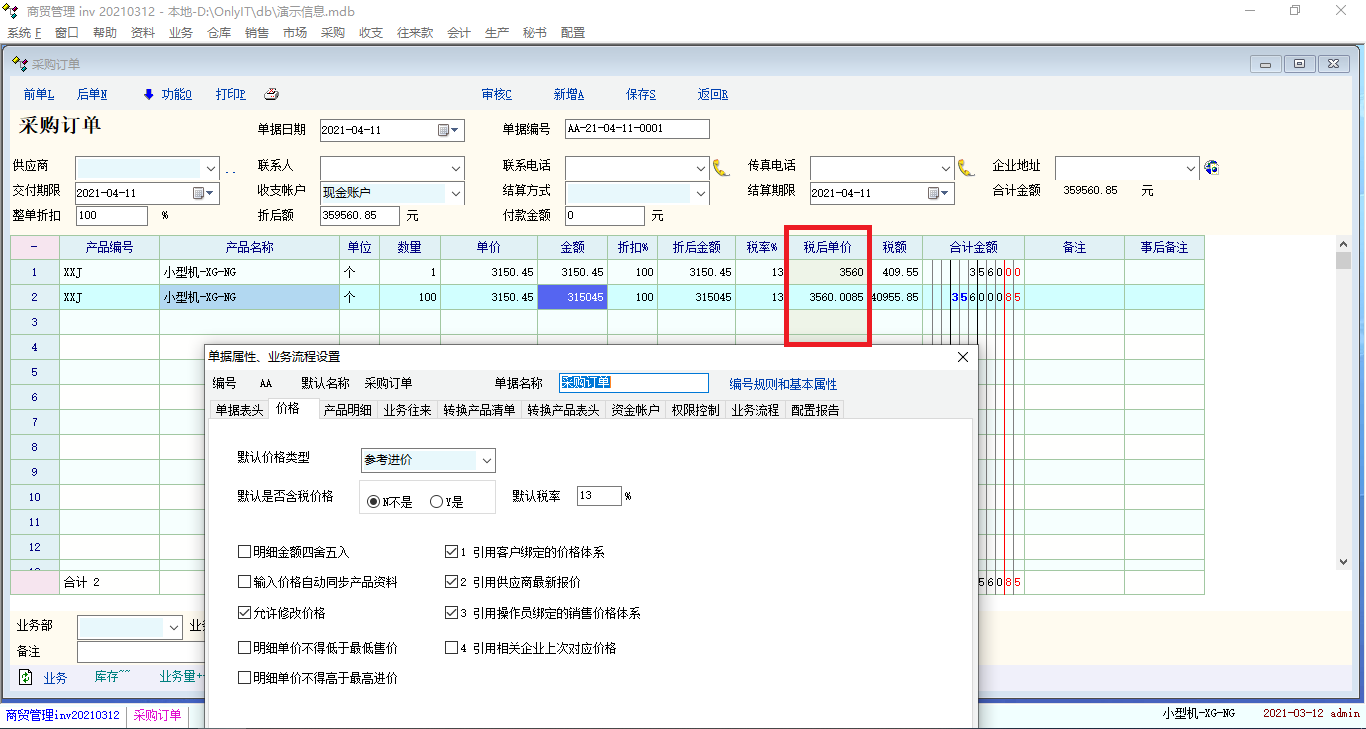 求助_采购订单 单据属性中 价格 设为不含税时,在单据明细中是否可以更改:税后单价?_产供销