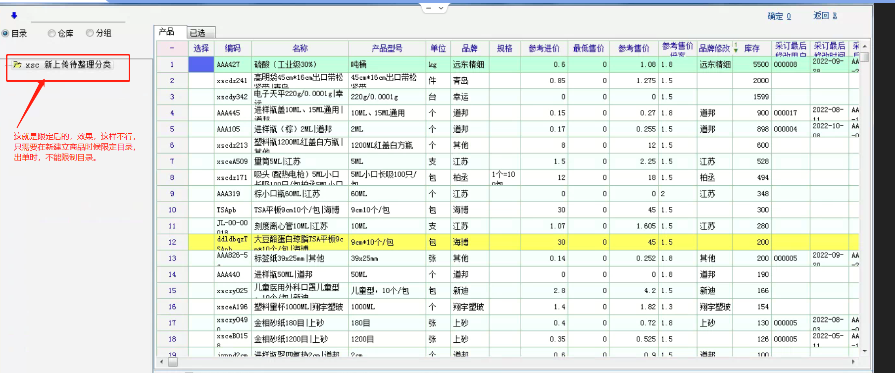 建议:增加,新增商品时限定目录功能,可以按照不同的人员授权不同的目录。或者不限制目录。具体看图片。