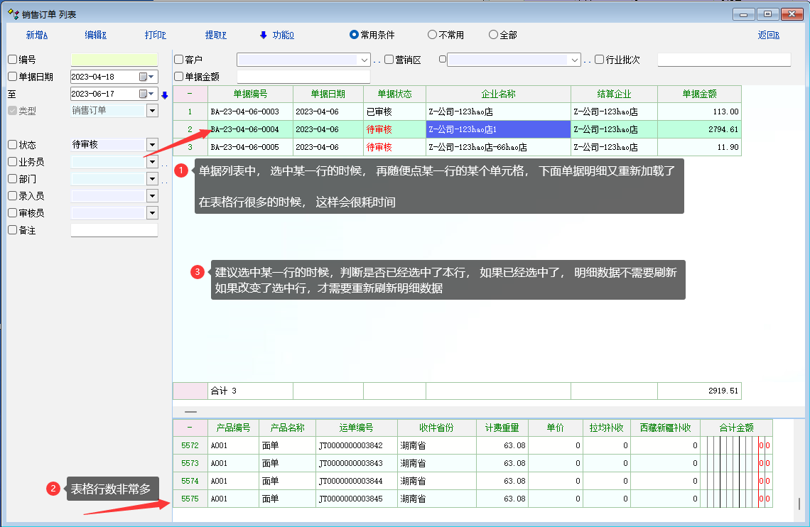 2. 有些行业, 是不需要在单据列表中加载 单据明细数据的。因为太多, 列表中也不方便查看。 可以设置选项, 直接显示明细表格, 也不用刷新加载明细数据, 提升了工作效率。