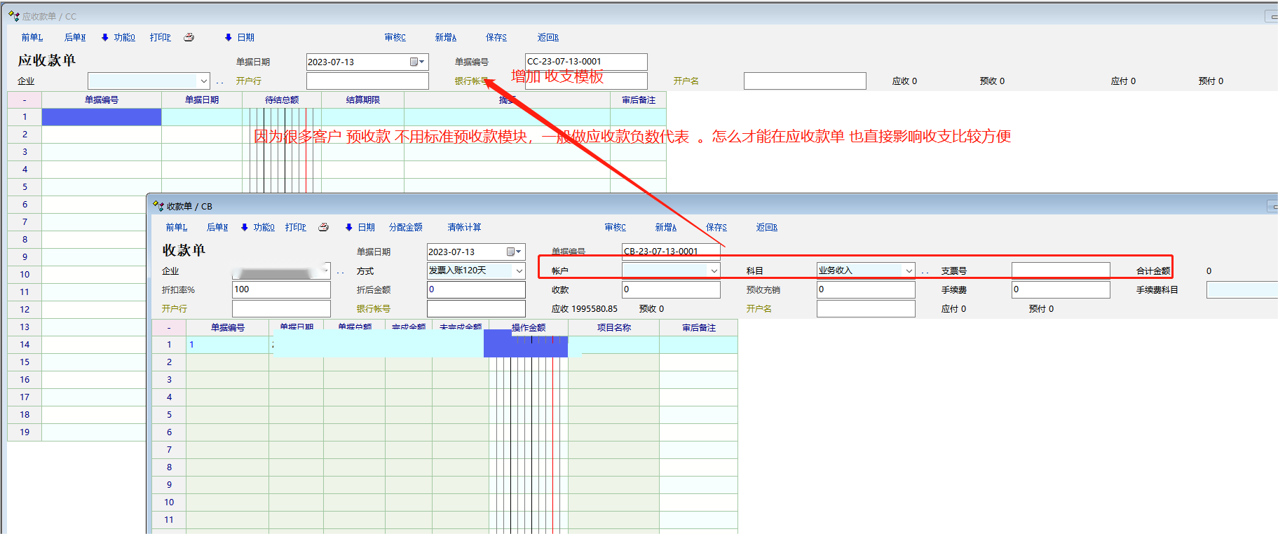 财务用应收款负数代表预收款。 做应收款单能否直接影响收支。 |