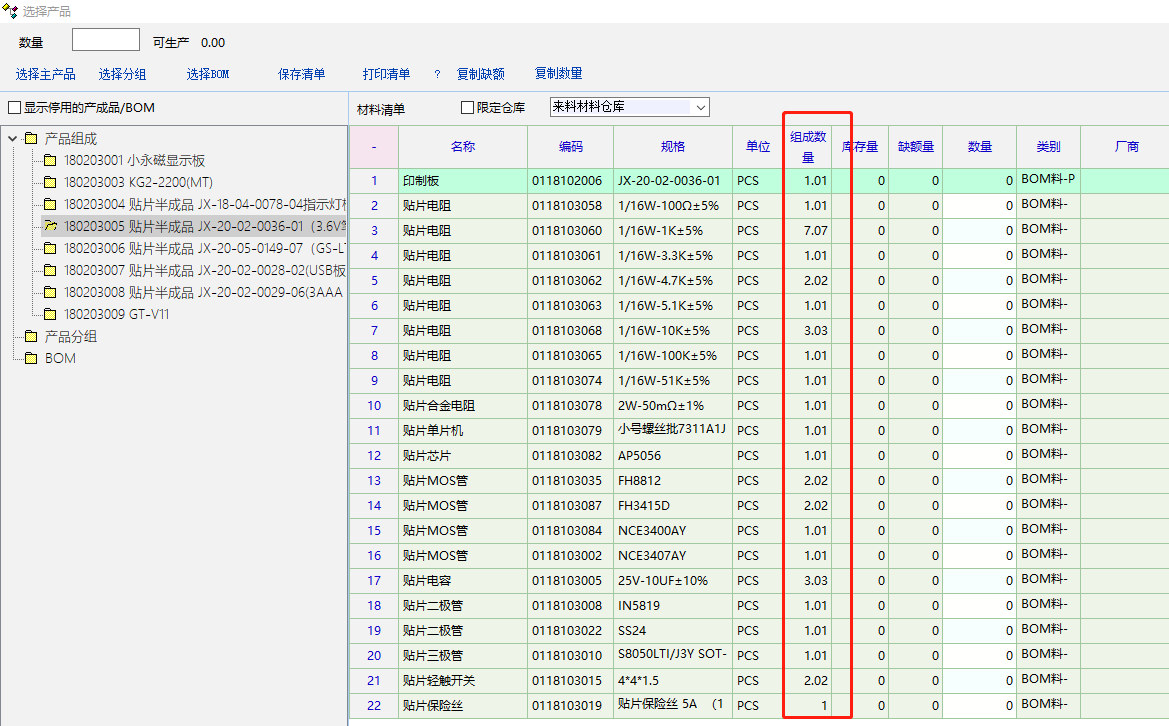 组成产品存量检查 bom明细能否增加 bom备注列