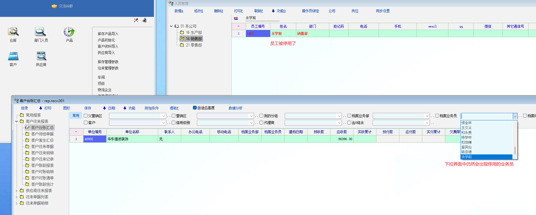 推荐_建议 往来款项报表中的档案业务员 下拉控件中, 不显示停用的选项_产供销