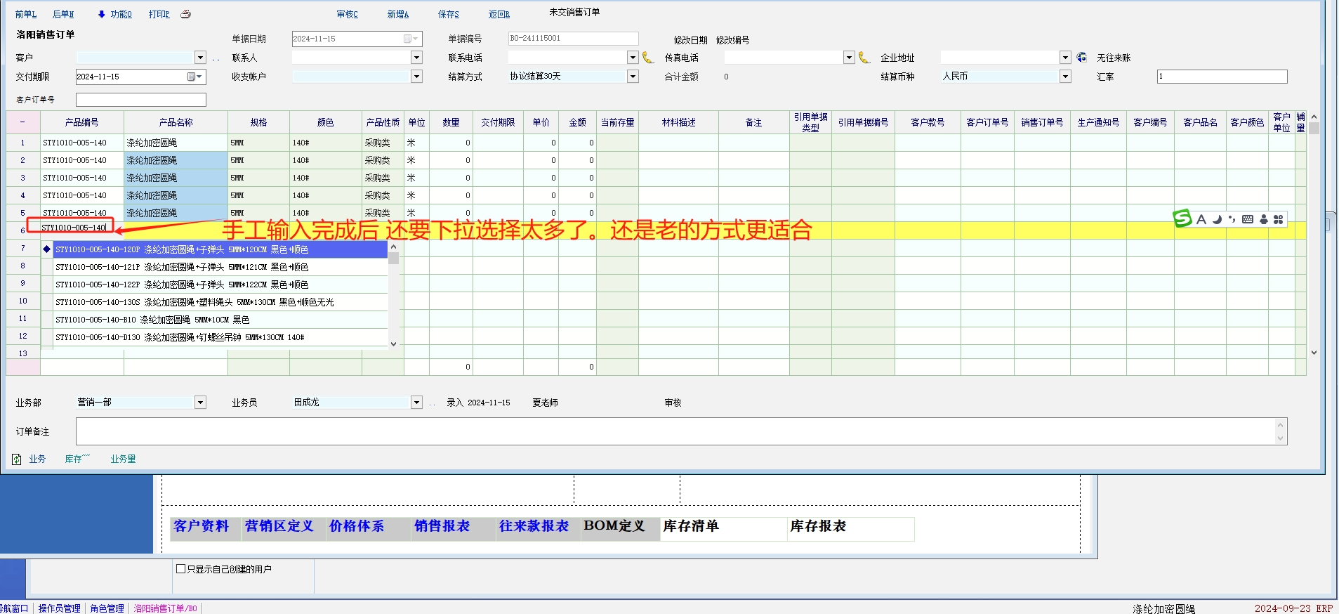 单据产品编号列手工输入编号时,老模式更适合部分企业快速开单。