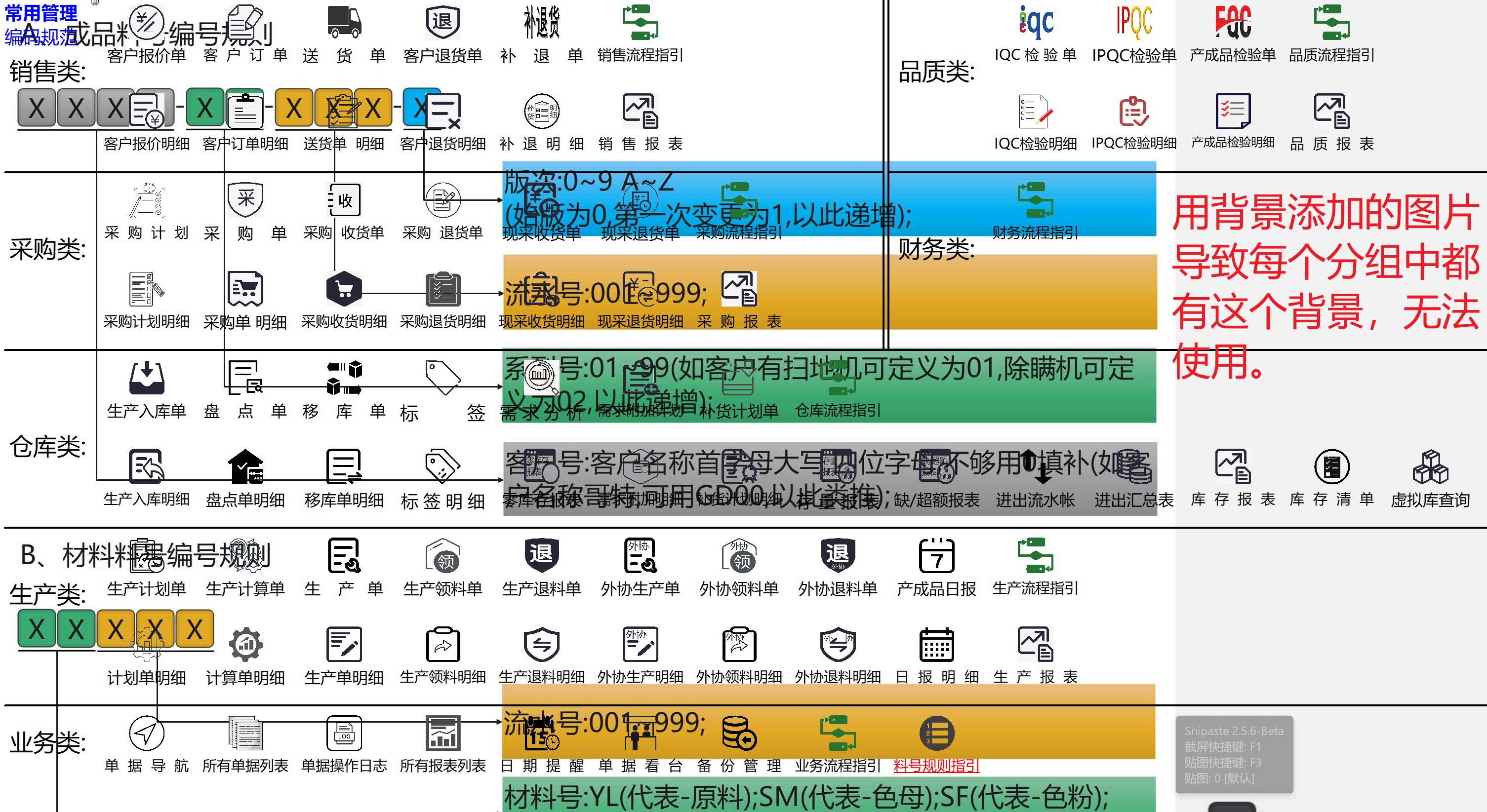 可否在导航窗口脚本定义中增加插入图片功能,我这个是在设置背景图(nag_set_bg_img)中添加的图片,但导致每个分组中都有这个背景,故无法使用此功能。 且需求有对图片的约束功能,如x,y,w,h的功能。且需要插入在哪个分组下等等; 原由:在导航窗口脚本定义中也可实际此图片功能,但太麻烦。 如能添加此功能则可以延伸做一些流程,比如销售流程,采购流程,仓库流程等等,用插入图片的功能就可以实现。因在系统外有一些专业的流程图软件,做出来的效果简单,直观,漂亮。 |