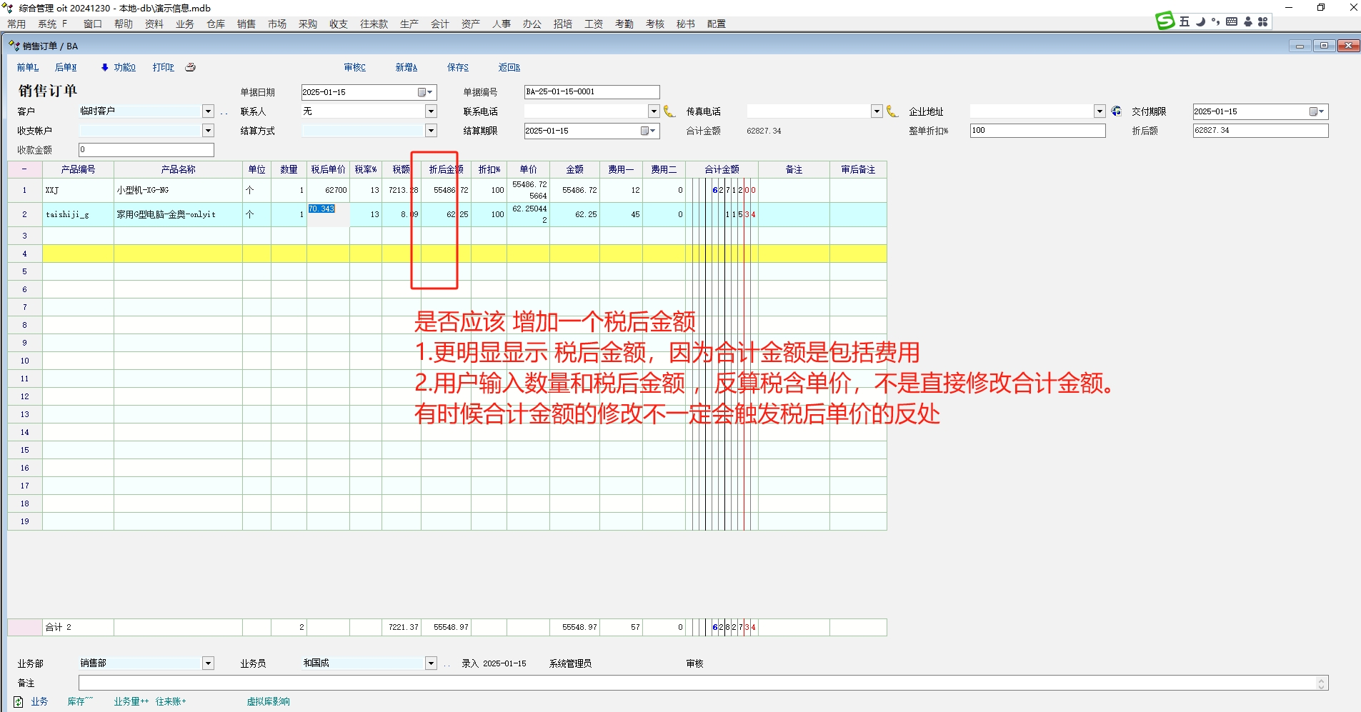 讨论_单据是否应该增加一个含税金额的列?_产供销